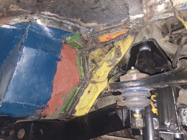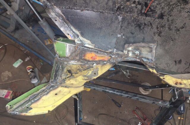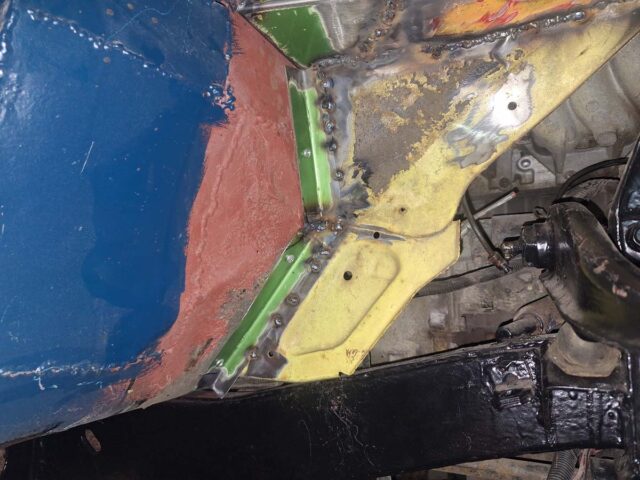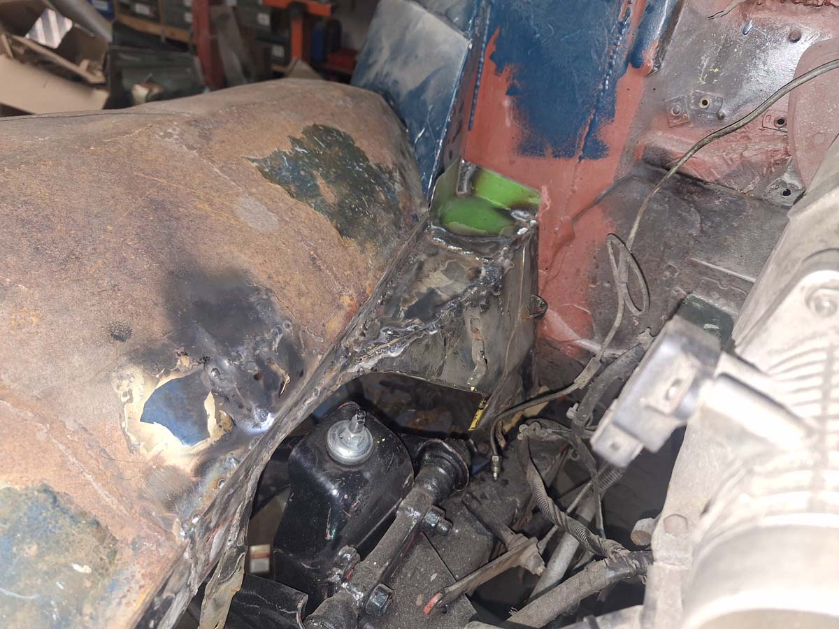 Komplett durchgeschweißt habe ich es bei demontierten Kotflügel. Das ist einfach schöner zu arbeiten, wenn man sich die Körperhaltung aussuchen kann.