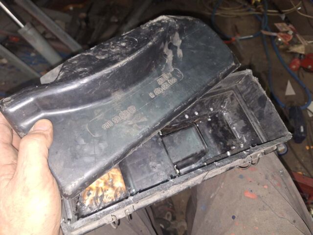 Aber der Boden des Luftfilters ist abgeschrägt – natürlich auf der verkehrten Seite. Also hilft nix. Boden abflexen.