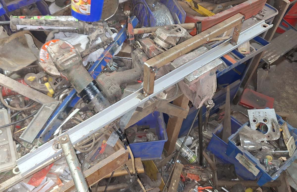 Ich habe dazu an eine Schiene – übrigens von der Garagentormechanik – ein U geschweißt. Erst danach habe ich die Mitte rausgeflext – so war das exakt in der Flucht. Das Konstrukt habe ich dann ans Armaturenbrett gepunktet.