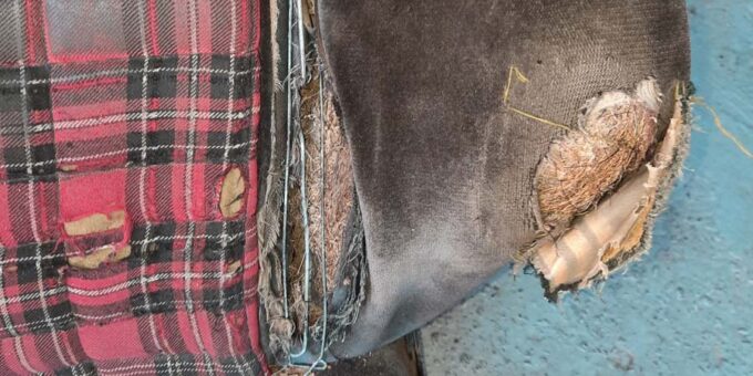 Gestern habe ich weitergemacht mit dem Aufnähen des Tartanstoffes auf den Fahrersitz. Eigentlich ist das gar kein soo schwieriger Job, aber ich finde ihn schon etwas nervig. Ich habe dazu übrigens speziellen Polstergarn genommen. Der ist gewachst, das er besser durchrutscht und besonders reißfest.