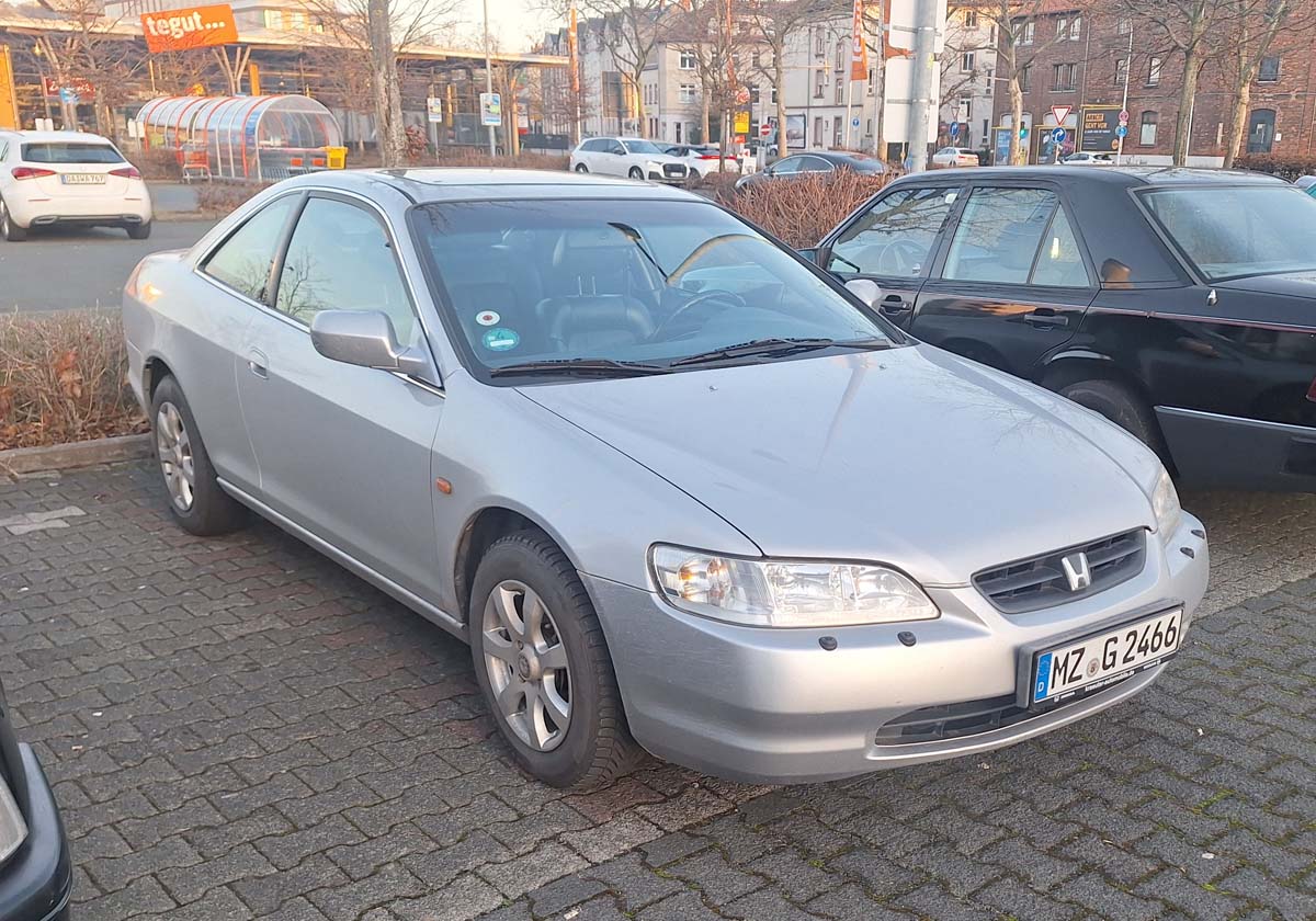 Gut, mein Autowissen lasst nach den 90er Baujahren rapide nach, neue Autos interessieren mich nicht. Das Auto ist Baujahr 2000. Und es war schon als Neuwagen ein Exot: Das ist ein Honda Accord Coupé, gebaut nicht in Japan – wo es ihn auch nicht zu kaufen gab – sondern im Hondawerk in Ohio/USA.