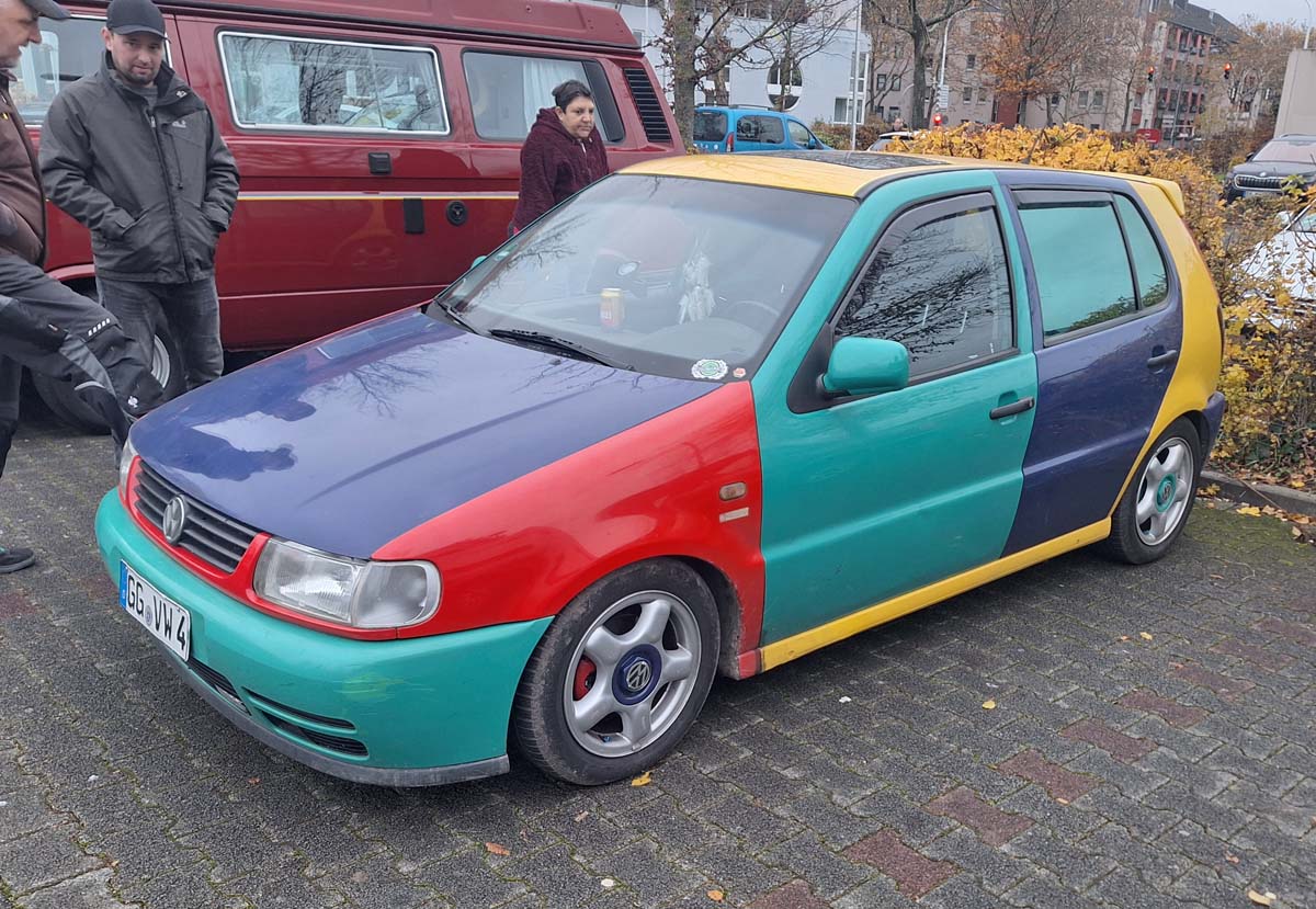 Ich gebe es ehrlich zu: Die Ornamente, die „nur“ Aufkleber sind, sind mir zu kitschig. Aber wenn es dem Besitzer so gefällt – warum nicht? Ich finde es super, dass bei uns auf dem Altautotreff so ein Auto gleichberechtigt neben einem originalen Oldtimer stehen darf.