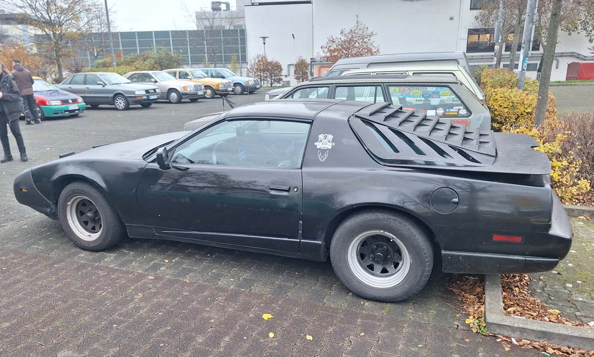 Gab es wohl so original in den USA und ist deshalb legal. Würde man sich das selber bauen und auf ein aktuelles Auto schrauben – ich befürchte der TÜV würde mich vom Hof jagen. Zu dem Pontiac Firebird gehört das aber eben dazu.