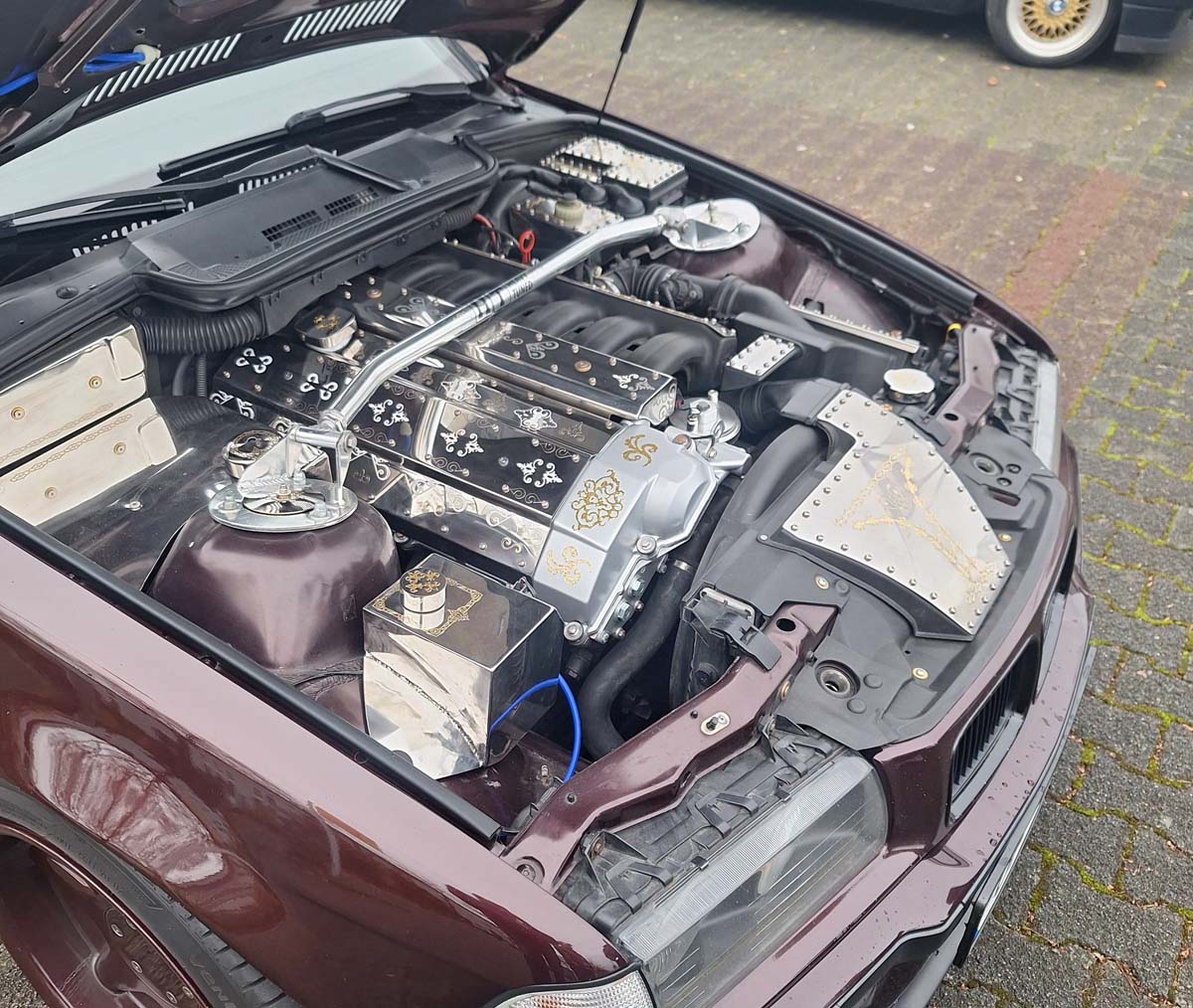 In manchen Augen grenzwertig: Der Motorraum dieses BMW E36.