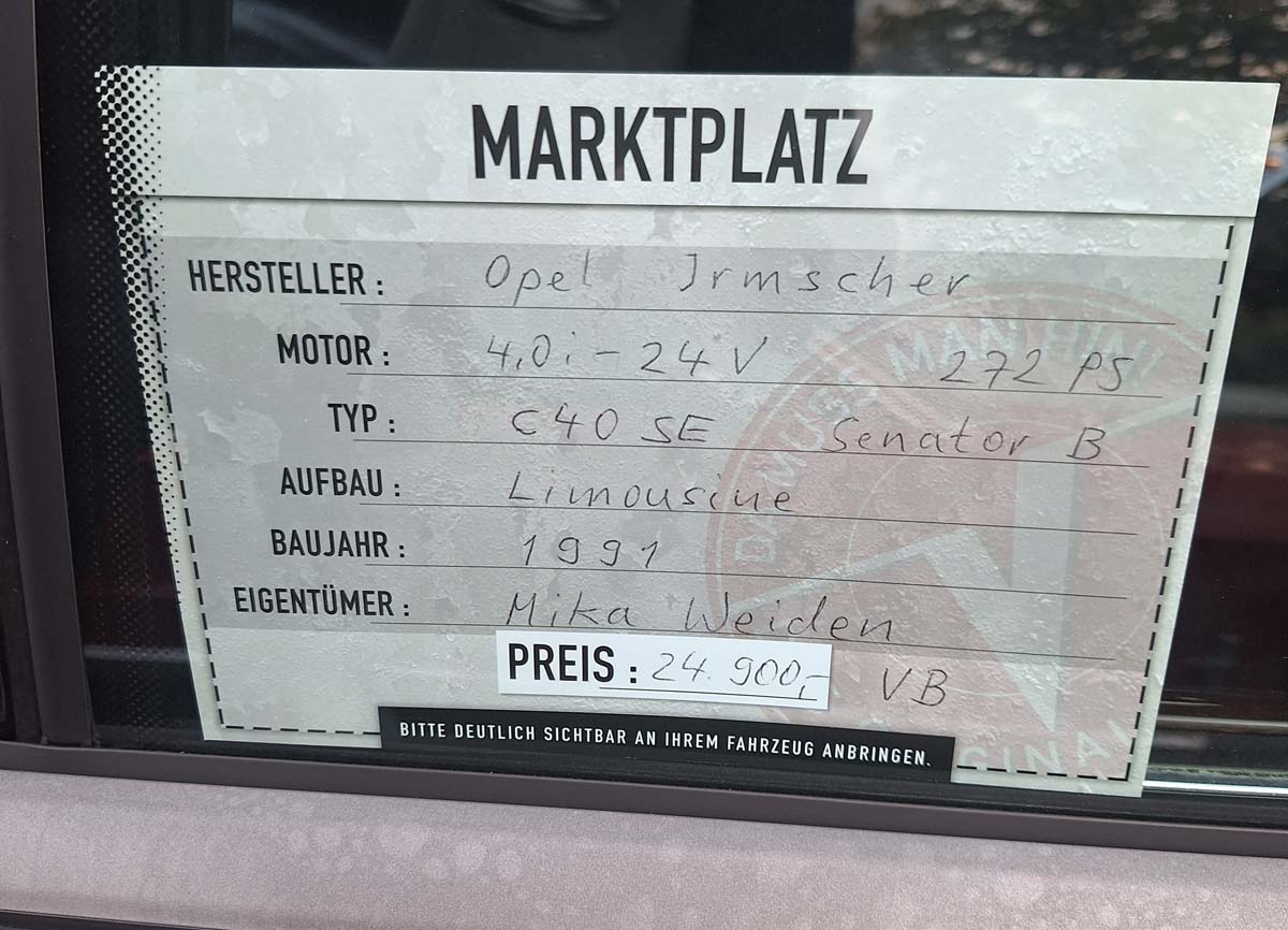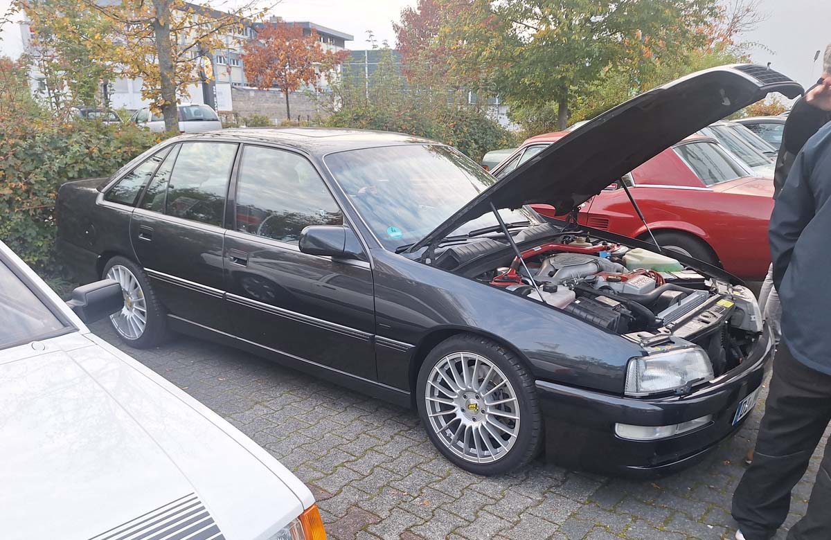 Klar, es waren wieder diverse alte Bekannte da, aber auch neue Autos. Eventuell war dieser Opel Senator auch gleich wieder das letzte Mal da, da er zum Verkauf steht: Kein originaler Irmscher, aber mit Irmscher Maschine – satte 4l Hubraum und stramme 272PS stark.