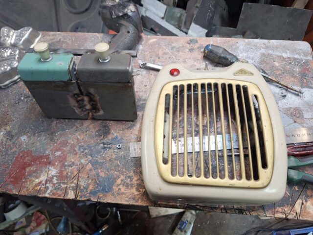 Der Abstand deshalb, weil das Ganze die Breite des Radios erhalten sollte. Das macht sich optisch besser. Aber nur die Aschenbecher alleine war auch doof. Aber ich hatte ja noch ein Heizlüftergehäuse.