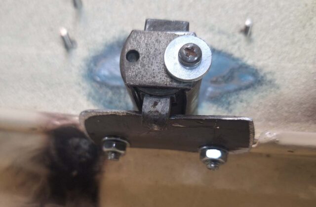 Wie lange schweiße ich jetzt schon wieder am Armaturenbrett vom ColdRod rum? Und es nimmt immer noch kein Ende. Es fällt mir ja auch ständig noch etwas ein, was noch fehlt. Aber machen wir erst einmal mit der Handschuhfachklappe weiter. Das Schloss hatte ich eingesetzt. Gibt da übrigens keinen Schlüssel dazu, was mir egal ist. Was nicht egal war, dass das Schloss nicht einhakte, weil der Anschlag fehlte. Ich habe da ein dickeres Alublech eingeschraubt. Alu deshalb, weil der Riegel daran kratzt und das wahrscheinlich schnell blank sein wird.