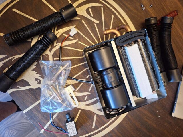 Es kam gleich zweimal ein Päckchen bei mir an für die Heizung am ColdRod. Zum einen habe ich eine billige Heizung aus China bestellt für ca. 39€. Einfach, um Arbeit zu sparen und weil die so schön kompakt ist. Ich konnte es mir nicht verkneifen, sie erst einmal aufzuschrauben, um zu sehen, was da drinsteckt. Weil in früheren Ausführungen hatten die einfach eine Art PC Lüfter drin und das erschien mir zu schwach. Aber da sind zwei „echte“ Lüfter drin.