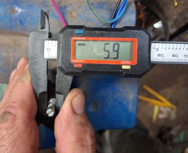 Original sitzt der Schalter hochkant, aber da sitzt bei mir eine Sicke, also habe ich quer das Loch ins Armaturenbrett geschnitten.