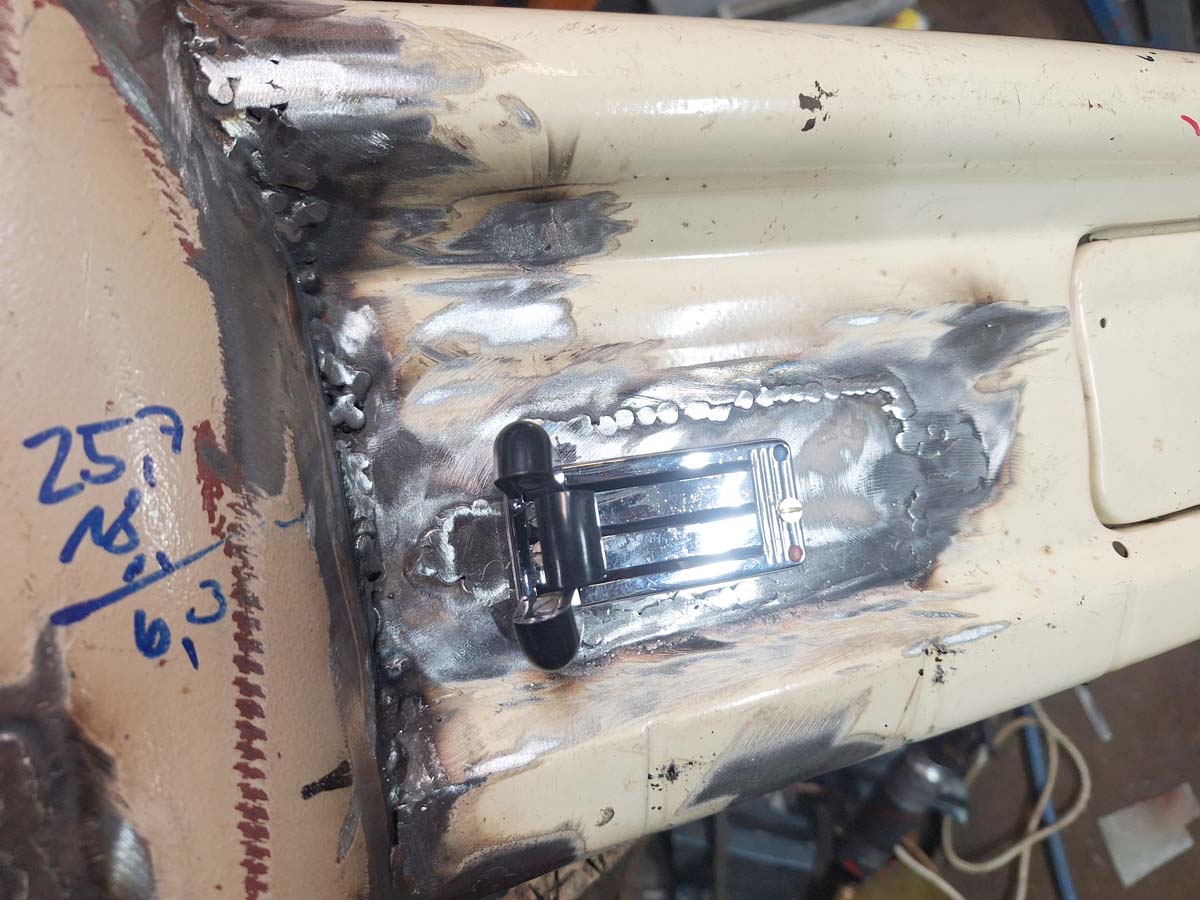 Fehlen immer noch Teile für das Armaturenbrett. Beispielsweise ein Verschluss für das Handschuhfach. Ach ja – und das Handschuhfach an sich ja auch noch…