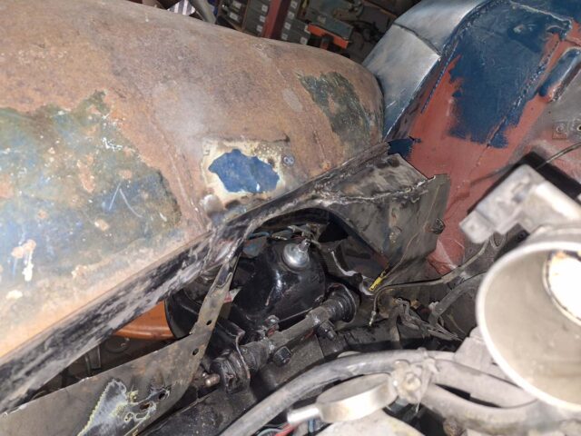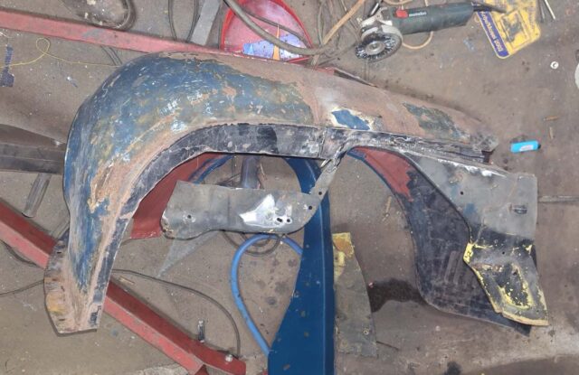 Ich habe fast das Gefühl, an dem Kotflügel ist inzwischen mehr Schweißnaht als Blech. Wie ich das nach vorne schließen werde, weiß ich ehrlich gesagt noch nicht. Aber da werde ich genauso vorgehen – einfach anfange. das ergibt sich schon. Vielleicht findet sich da noch der Platz für die Batterie. Mal sehen.