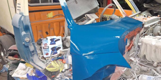 Manchmal macht es Sinn, an zwei Baustellen gleichzeitig zu schaffen. Ich wollte gestern spachteln. Das war die eine Baustelle. Ich wollte eben mal eine kleine Stelle der Karosserie fertig haben.
