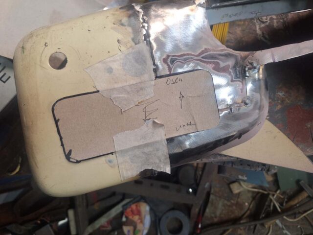 Ein wenig geärgert habe ich mich darüber, dass ich die Schablone nicht vorher gehabt habe. denn 80% der Schweißnähte zum Verschließen des alten Lochs hätte ich mir sparen können.