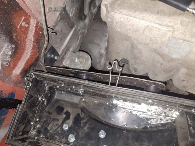 Jetzt zeigte sich, dass das zu diesem Zeitpunkt gar nicht so doof ist, dass ich erst eine Halbe Motorhaube habe. Denn so konnte ich sehen, ob das auch nirgendwo an die Haube kommt. Und da ist auch noch genug Platz.