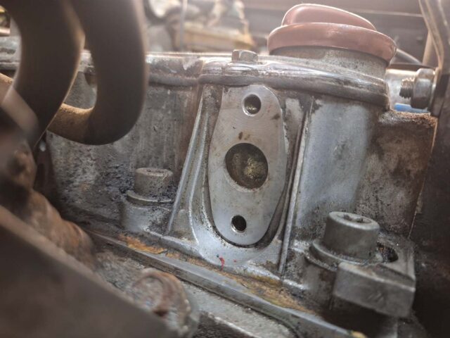 Ich hatte noch etwas Zeit und da entglitt mir dann mein Spieltrieb ein wenig. Am Zylinderkopf ist eine Vorbereitung für die mechanische Spritpumpe bei Vergasermodellen, ich habe aber ja einen Einspritzer. Ist also unsinnig.