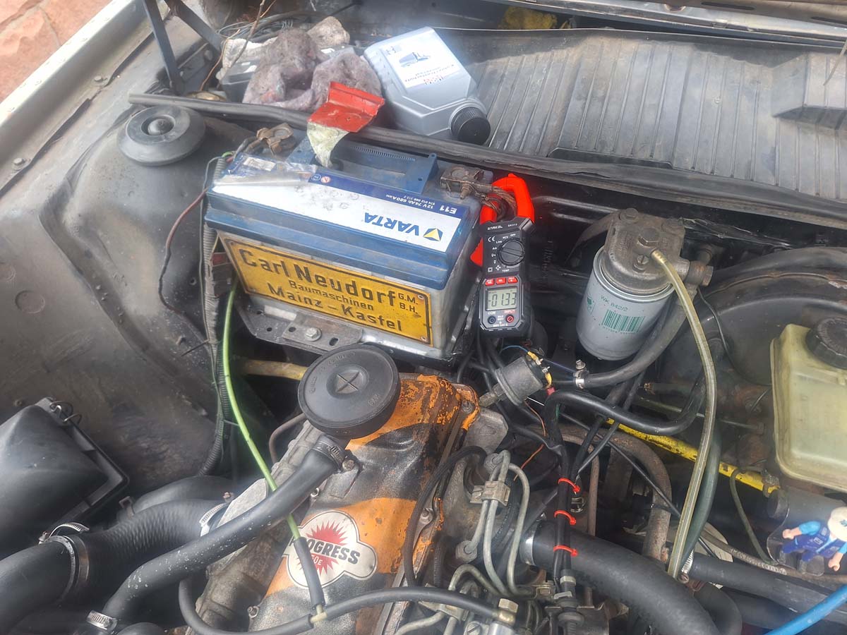 Getestet mit seinem Messgerät, mit dem wir bei ihm auf dem Hof das getestet hatten und auch die hat nicht geladen. Hä? Erst dann fiel mir der Denkfehler, der uns beiden nicht aufgefallen ist, auf: Im Pirat ist es so, dass es erst einmal eine gewisse Drehzahl, also einen Gasstoß, braucht für den Erregerstrom und erst dann die Lima arbeitet. Kurz Gas gegeben und der Motor lief.