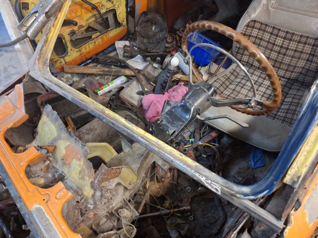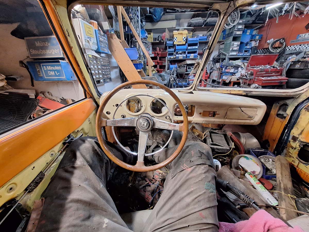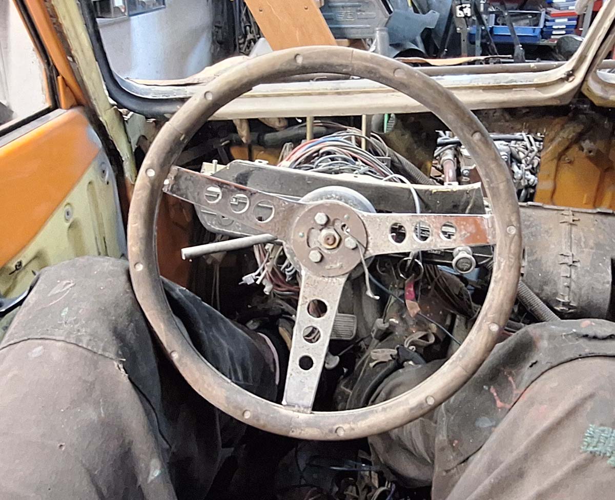 Ich habe Lust, das Armaturenbrett anzufangen. Aber einfach anfangen ist nicht, denn das Armaturenbrett muss ja um die Lenksäule passen. Und die Lenksäule muss ich noch ersetzen. Wer die Vorgeschichte nicht kennt, oder wieder vergessen hat: Beim Kauf war das originale Lenkrad nicht dabei, sondern ein Zubehörlenkrad verbaut.