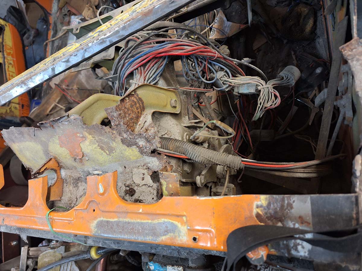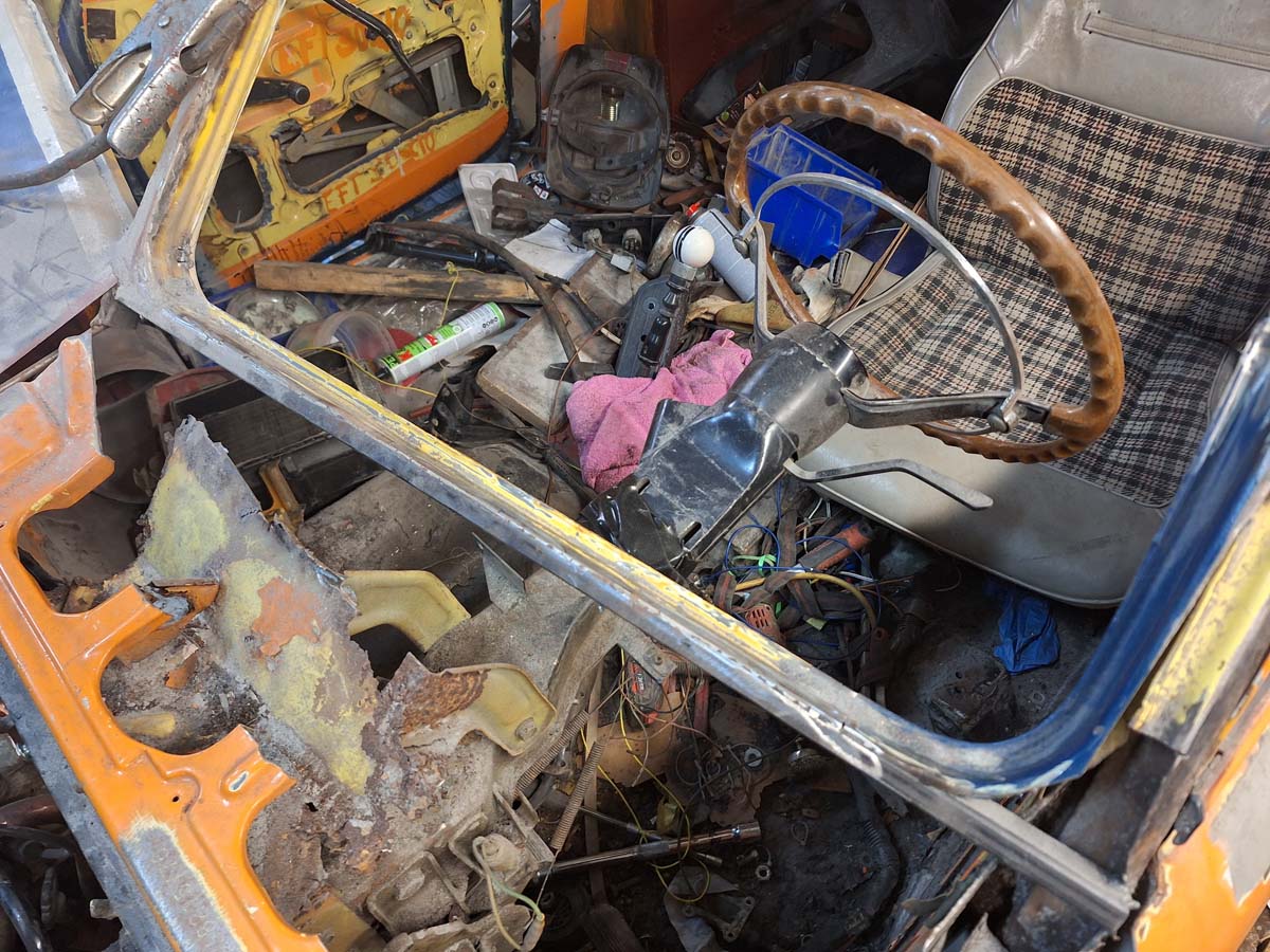 Die Abstützung der Lenksäule? Katastrophe. Da ist wirklich alles morsch. Das muss ich alles neu bauen.