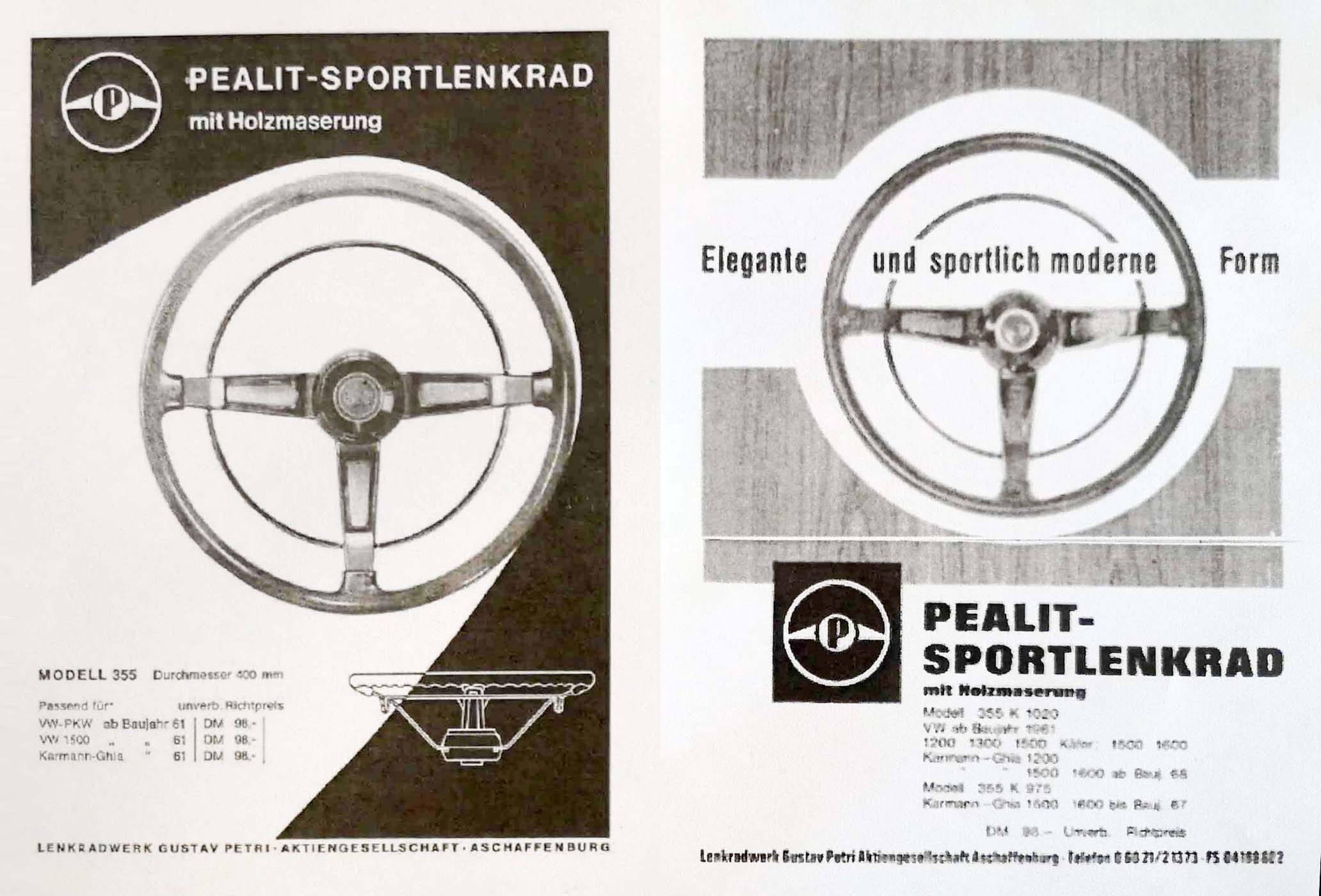 Das Petri Lenkrad Typ 355 – ich liebe es – hat der TÜV übrigens abgesegnet. Das war damals für den Käfer zugelassen.